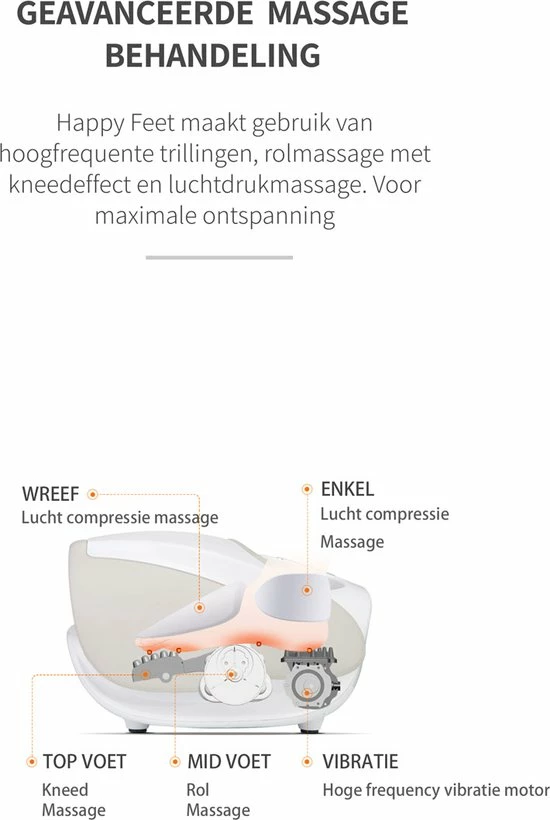 Het Happy FEET voet- en kuitmassage apparaat biedt: