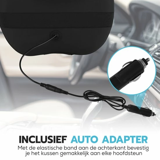 De elastische band van het massagekussen maakt het mogelijk om hem aan je auto- of bureaustoel vast te maken. De auto adapter is handig wanneer je het massage apparaat wilt gebruiken in de auto. Dankzij de infrarood warmte van het kussen blijf je altijd lekker warm. Hierdoor is het massagekussen perfect voor de koude wintermaanden.