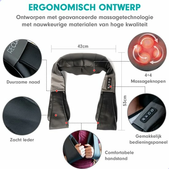 Spierpijn of een stijve nek? Het Recures? shiatsu massagekussen kneedt al jouw zorgen weg. Met een warmte element, armlussen en een comfortabele fit geniet jij thuis van een professionele massage behandeling.
