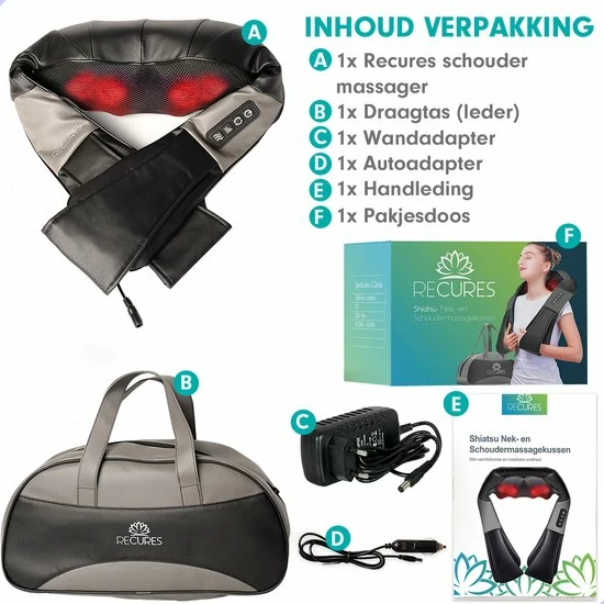 Onze set wordt geleverd met een auto- en AC-adapter. Handig! Zo heb je alles bij elkaar in ??n pakket en kun je direct genieten van een heerlijke massage.