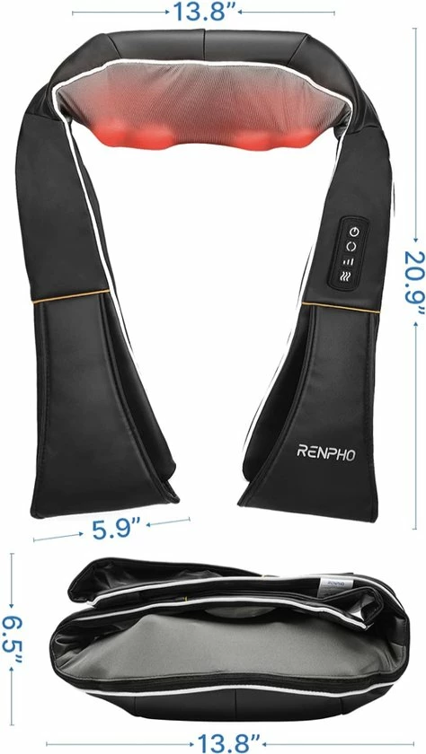 RENPHO Shiatsu Neck And Shoulder Back Massager With Heat, Electric Vibration Deep Tissue 3D Kneading Massage Pillow For Pain Relief On Waist, Leg, Calf, Foot, Arm, Belly, Full Body, Muscles