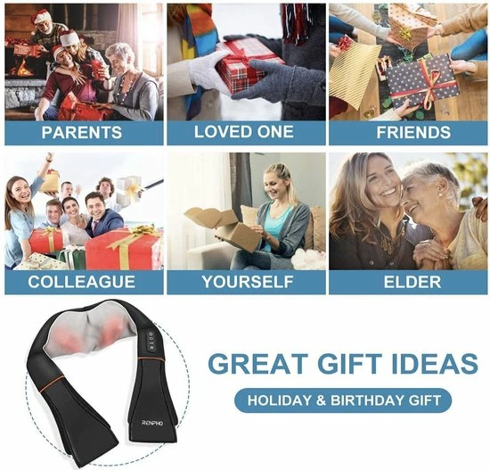 - Maakt een geweldig cadeau – Massagers voor nek en rug zijn een geweldig vakantie- en verjaardagscadeau, verbeteren de gezondheid en het welzijn van uw vrienden en familie. Perfect cadeau vo