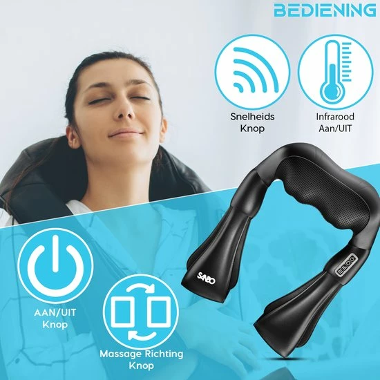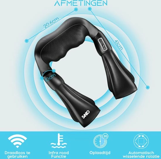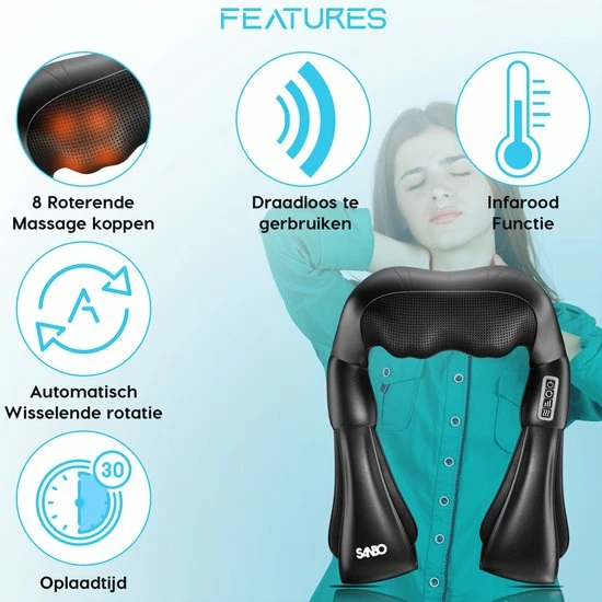 Last van uw rug na een lange werkdag? Of wilt u liever lekker ontspannen en genieten van een welverdiende massage? Profiteer van bevorderende Shiatsu en/of ontspanningsmassage met het SANBO Draadloze Massage Kussen. Het apparaat heeft 8 massage koppen met warmtefunctie voor de ultieme ervaring! Het SANBO Draadloze Massage Kussen is multifunctioneel in gebruik en geschikt voor vrijwel elke spiergroep! Het helpt spieren bij het afvoeren van afvalstoffen en helpt spieren daarnaast flexibel te blijven.