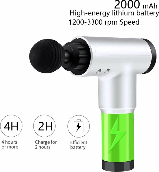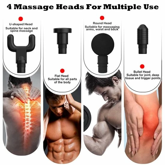 De Massage Gun is over het hele lichaam te gebruiken. Je kan kiezen van level 1 t/m 6 qua sterkte. De 4 kopstukken die er bij meegeleverd worden maakt het nog makkelijker om bepaalde lichaamsdelen echt goed aan te spreken