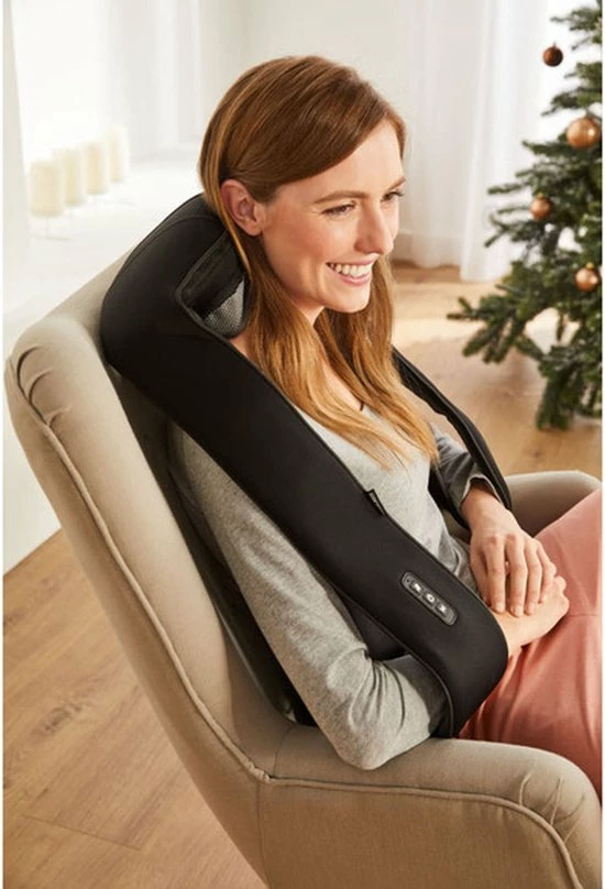 Ben je moe door je zware werkdag? Kan je niet meer fijn slapen omdat je last hebt van je nek? Dan is dit shiatsu nekmassage apparaat de oplossing! Dit nekmassage apparaat bevat zacht materiaal en heeft 2 massage sterktes die je laten ontspannen en je spieren losmaken. Het massagekussen heeft daarnaast een stand voor warmtemassage en 4 massageknoppen die in tegengestelde richting draaien. De massagetechniek is gebaseerd op de Shiatsu massagemethode, van het Japanse; “Shi” = vinger, “atsu” = druk. Met je handen in de lussen kan je zelf de massagedruk op je spieren regelen. Na 15 minuten schakelt het kussen automatisch uit. Het apparaat heeft een vermogen van 12 W.