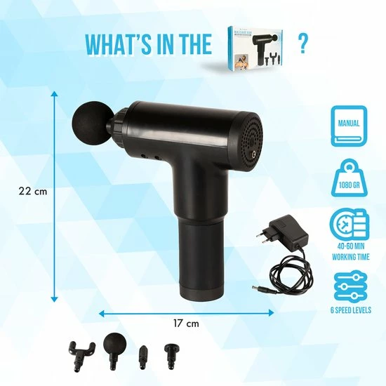 Door de verschillende sterktes en kopstukken is de Massage Gun de perfecte toevoeging voor elke atleet, (fysio)therapeut of andere fitness/revalidatie gerelateerde beroepen.
