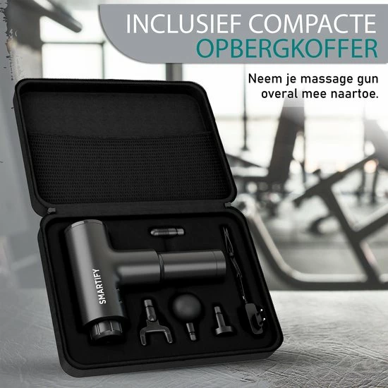 Onze Massage Gun is ontworpen in samenwerking met personal trainers en fysiotherapeuten. Dankzij de kennis en expertise van deze professionals hebben wij onze Massage Gun optimaal ontworpen om jouw spieren te ondersteunen. Door het gebruik van de SMARTIFY Massage Gun voorkom je blessures door de spieren intensief te masseren. De Massage Gun helpt tevens bij de doorbloeding en de afvoer van afvalstoffen in de spier. Zo voorkom je blessures of vervelende spierklachten.Daarnaast produceert de SMARTIFY Massage Gun slechts 40 decibel, en is hij lekker stil zodat jij kunt genieten. Laadt de Massage Gun op en neem de Massage Gun gemakkelijk mee naar de sportschool dankzij de travel case.