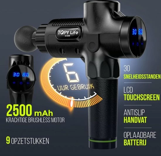 Zelfs op de hoogste snelheid (53 intensieve vibraties per seconde) is het de TopyLife Massage Gun de moderne stilte technologie bijna geruisloos.