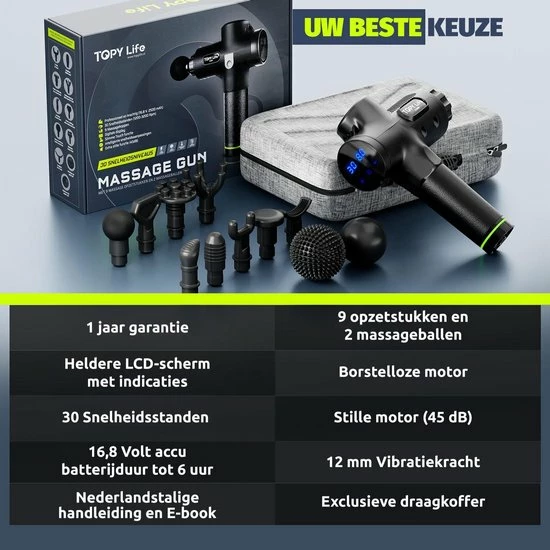De TopyLife Massage Gun is een professioneel en krachtig massage apparaat. Een slecht gegeven massage kan voor klachten zorgen. Daarom kies je voor een professionele masseur die zijn of haar vak verstaat en weet waar hij of zij mee bezig is. Het is net zo belangrijk dat je weet hoe je de TopyLife Massage Gun gebruikt.