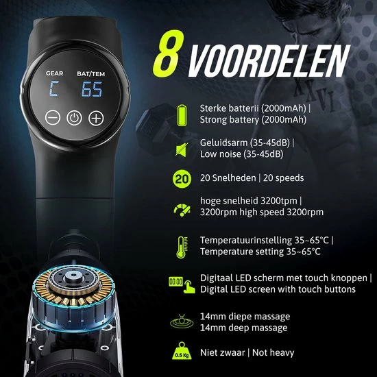? Haal alles uit jouw training ? Dankzij de massagegun wordt spierherstel & spierontspanning bevordert, waardoor jij sneller herstelt bent voor een nieuwe training en alles uit jouw training kunt halen.