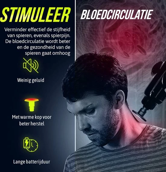De massage gun is ideaal om te gebruiken na een (intensieve) training. Dankzij de vernieuwde klopmassage technologie van de massage bal worden de spieren intensief gemasseerd. Daarnaast zorgt de warmtefunctie ervoor dat de doorbloeding van de spieren geoptimaliseerd wordt, zodat afvalstoffen effectief afgevoerd kunnen worden. Deze warmtefunctie zorgt er daarnaast ook voor dat de spieren nog sneller ontspannen en helemaal tot rust komen.