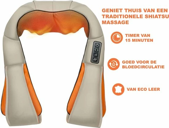 Dankzij de verwarmende rug- en nekmassage van de Shiatsu massage raak je vermoeidheid op een uiterst aangename manier kwijt! Het is voldoende om het apparaat op het geselecteerde deel van het lichaam te plaatsen, het aan te zetten en te genieten van een zachte maar stevige massage. De 8 massagekoppen zijn in diverse standen te gebruiken.