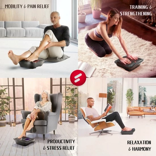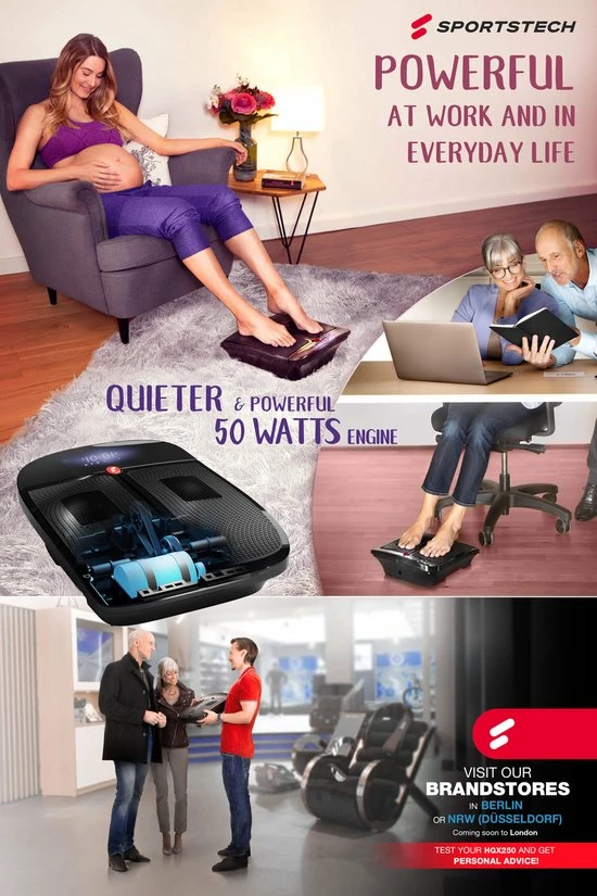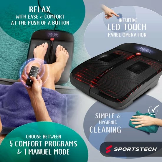 De VX350 combineert vibratie met massage. Met extra ge?ntegreerde en roterende acupressuur massagekoppen masseer je de voetreflexzones en pep je je benen op. Want de combinatie van trilling en massage stimuleert de bloedsomloop in je voeten en benen, geeft spanningen het nakijken en stimuleert je gezondheid. Leun lekker achterover en geniet van de aangename ontspanning.