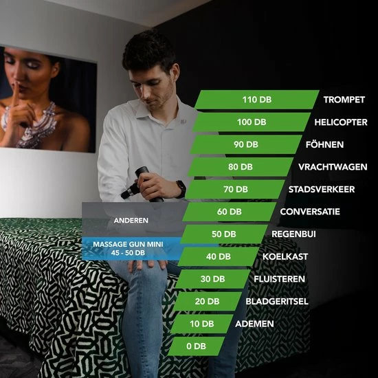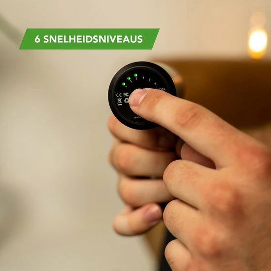 De Massage Gun Mini heeft zes snelheden. De LED verlichting laat zien welke snelheid geactiveerd is. Met zijn maximaal vijftig decibel is het massageapparaat bijzonder stil en dat zorgt ook weer voor extra ontspanning. De vier meegeleverde koppen maken de Massage Gun geschikt voor het hele lichaam. Heb je ook de grote broer van deze Massage Gun? Je kunt de koppen zelfs onderling uitwisselen.