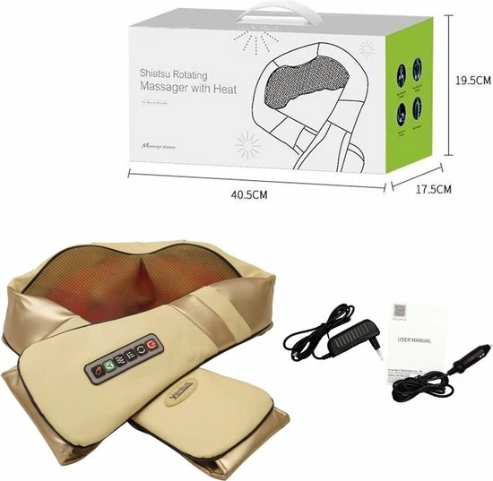 De 16 verschillende Shiatsu massagekoppen zorgen voor een ultieme ontspanning tijdens gebruik. Naast ontspanning helpt het massagekussen ook tegen spierpijn of stijve spieren. Het nekmassage apparaat met de 16 roterende ballen zal je spierweefsel geheel doen ontspannen! Hij gaat automatisch uit na 20 minuten, ook hier hoef je je geen zorgen over te maken.