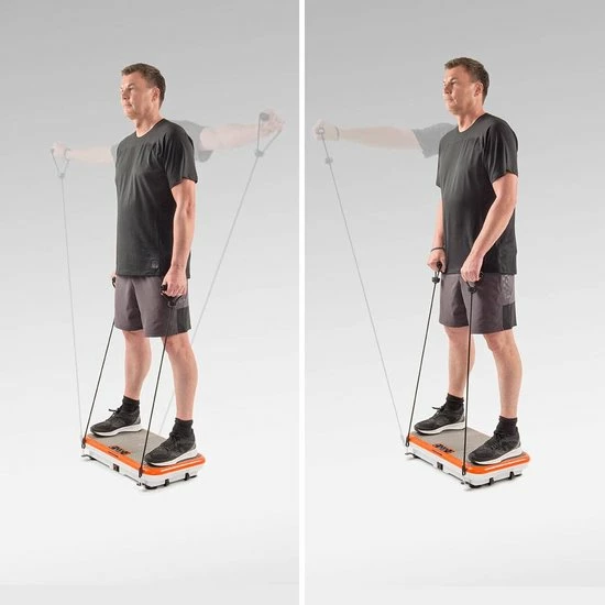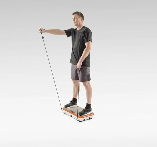 - STRAK LICHAAM ? De fitness trilplaat werkt met oscillatietechnologie en bouwt spieren op door trillingen. De training kan ge?ntensiveerd worden met de Power stretchbandjes.