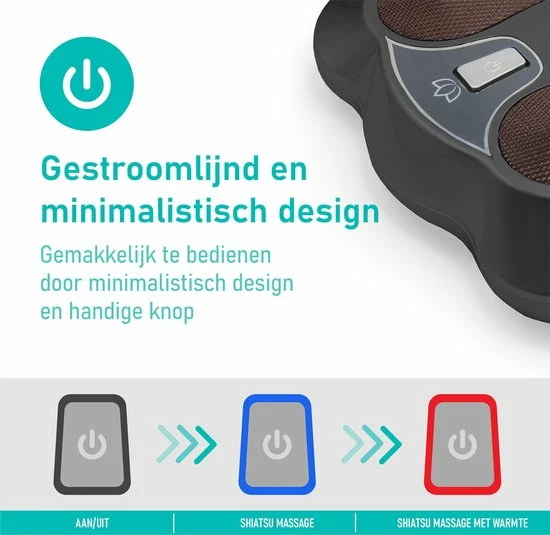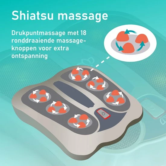 Shiatsu, ook wel acupressuur of drukpuntmassage genoemd. Door het gebruik van de ronddraaiende massagekoppen verbeter je de werking van minder goed functionerende organen, waardoor je je algemene gezondheid stimuleert en instant houdt. Shiatsu maakt deel uit van de holistische therapievorm waarbij vaak met energiepunten, energiebanen of meridianen wordt gewerkt. Lichaam en geest worden hierbij als een geheel behandeld.