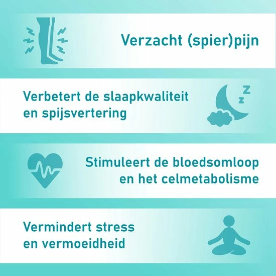 - Helpt bij pijnlijke voeten en benen