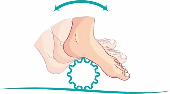 De oefenbal rol je dagelijks minimaal 3 minuten onder de voet heen en weer.
