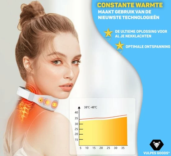 Het massageapparaat van Vulpes Goods? vermindert en voorkomt vervelende nekklachten. Dankzij de verschillende standen en intensiteitsniveaus kun je het apparaat gemakkelijk afstellen op jouw behoeftes en op jouw eventuele klachten. Zo kun je deze klachten met ons massageapparaat gemakkelijk voorkomen of verminderen.