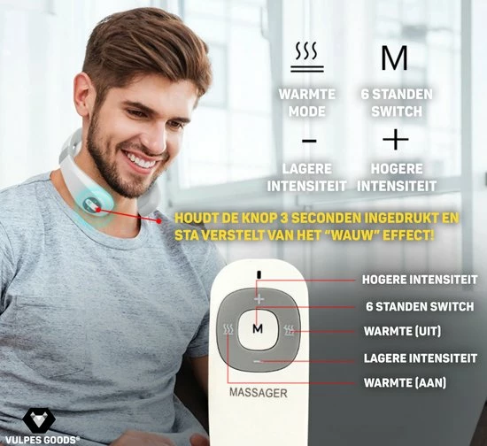 Heb je last van epilepsie of heb je een pacemaker, defibrillator of andere diathermische onderdelen? Dan mag je het professionele nek massageapparaat van Vulpes Goods? niet gebruiken. Overleg ten allen tijden met een arts als je twijfelt.