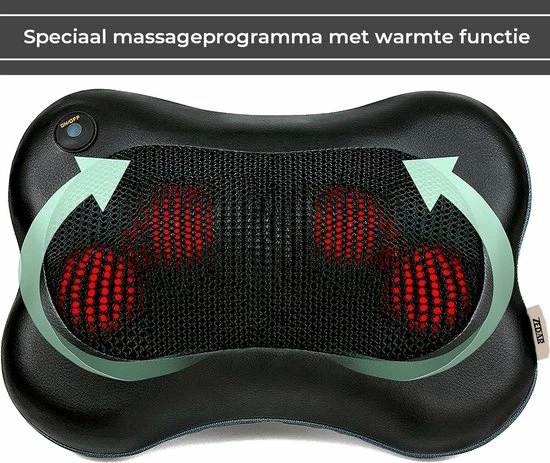 Het massagekussen van Zedar beschikt over 4 massageknoppen. Deze kneden en draaien zowel met de klok mee als tegen de klok in. Daarnaast beschikt hij over een warmtefunctie waarmee je de massage nog intenser maakt.